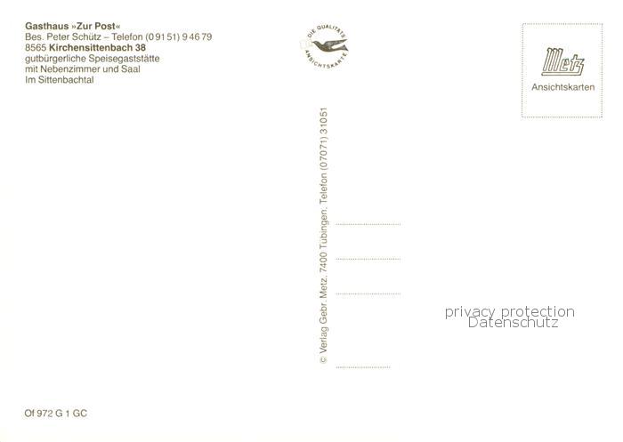 73863035 Kirchensittenbach Gasthaus zur Post Gastraeume postalisch nicht gelaufen Erhaltung siehe scans [FriedD77] KatCode: 11110009574135