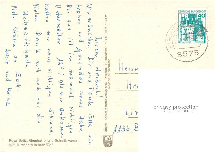 73672065 alte Postkarte Kirchenthumbach Ortsansicht mit Kirche Denkmal Heiligenfigur Hauptstrasse postalisch gelaufen Erhaltung siehe scans [FriedD77] KatCode: 11110009374129