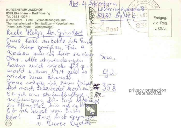 74042543 alte Postkarte Kirchham Bad Fuessing Kurzentrum Jagdhof Fliegeraufnahme postalisch gelaufen Erhaltung siehe scans [WerneD78] KatCode: 11110009275116