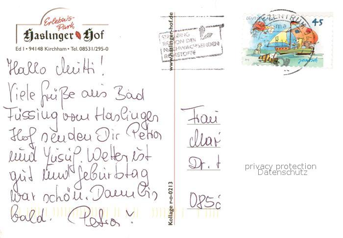 73660395 alte Postkarte Kirchham Niederbayern Erlebnispark Haslinger Hof Hotel Restaurant Tanzveranstaltung postalisch gelaufen Erhaltung siehe scans [FriedD77] KatCode: 11110009275130