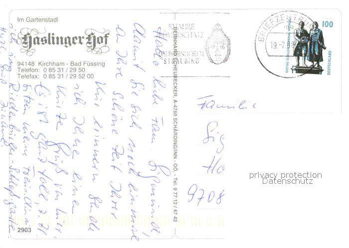 72825333 alte Postkarte Kirchham Niederbayern Haslinger Hof postalisch gelaufen Erhaltung siehe scans [AndreD76] KatCode: 11110009275130
