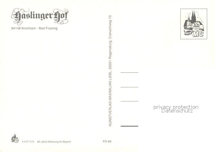 73646322 Kirchham Niederbayern Hotel Restaurant Haslinger Hof Brauhaus Kapelle Holzbruecke postalisch nicht gelaufen Erhaltung siehe scans [FriedD77] KatCode: 11110009275130