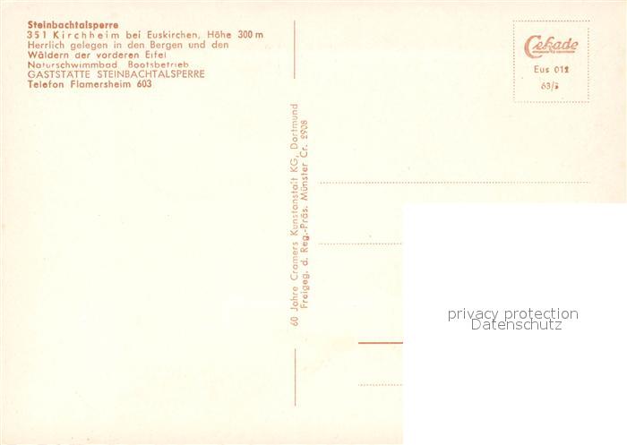 73106514 Kirchheim Euskirchen Fliegeraufnahme Steinbachtalsperre postalisch nicht gelaufen Erhaltung siehe scans [KathaD81] KatCode: 11110005366016