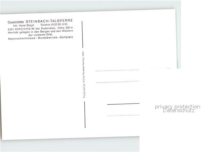 72203781 Kirchheim Euskirchen Gaststaette Steinbach Talsperre postalisch nicht gelaufen Erhaltung siehe scans KatCode: 11110005366016