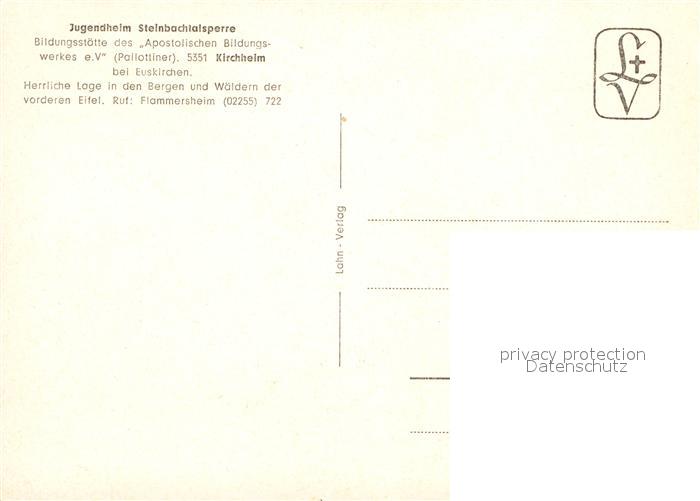 72947080 Kirchheim Euskirchen Jugendheim Steinbachtalsperre postalisch nicht gelaufen Erhaltung siehe scans [LiesaD40] KatCode: 11110005366016