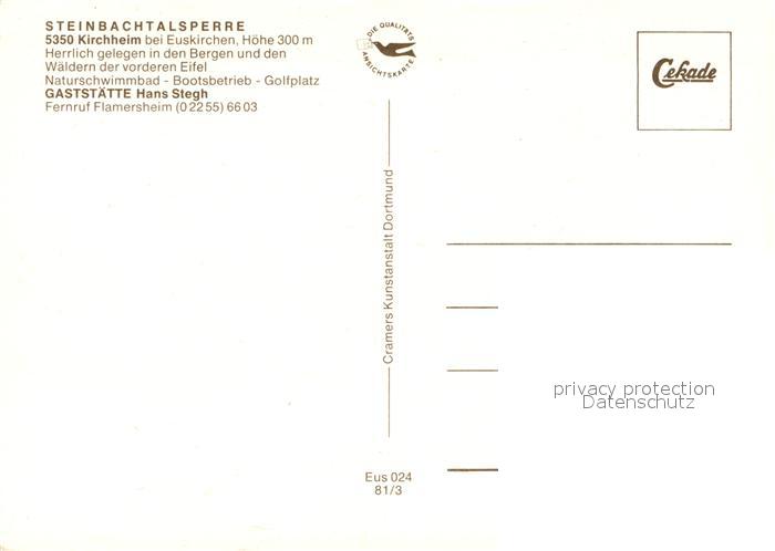 73106605 Kirchheim Euskirchen Steinbachtalsperre postalisch nicht gelaufen Erhaltung siehe scans [KathaD81] KatCode: 11110005366016