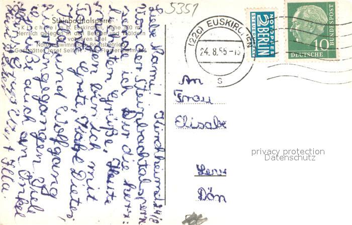 33701331 alte Postkarte Kirchheim Euskirchen Steinbachtalsperre Freibad postalisch gelaufen Erhaltung siehe scans [WerneD78] KatCode: 11110005366016