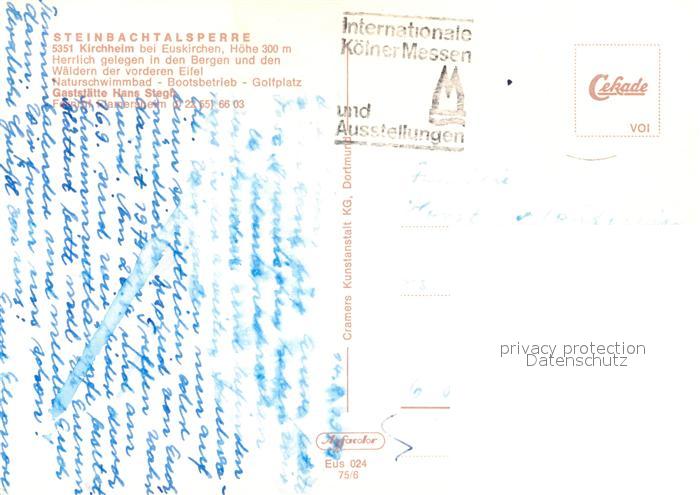 73207976 alte Postkarte Kirchheim Euskirchen Steinbachtalsperre postalisch gelaufen Erhaltung siehe scans [KathaD81] KatCode: 11110005366016