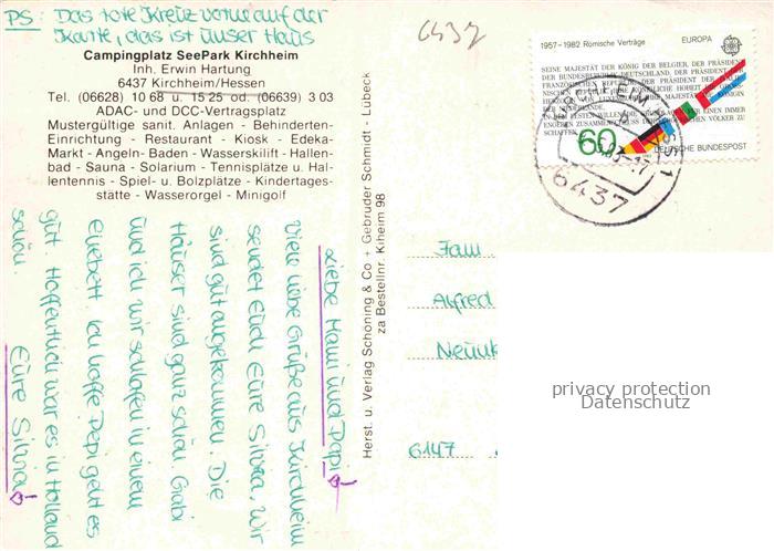 74155062 alte Postkarte Kirchheim Hessen Aulatal Hersfeld-Rotenburg Hessen Campingplatz Seepark Kirchheim Luftaufnahme Restaurant Hallenbad postalisch gelaufen Erhaltung siehe scans [FriedD77] KatCode: 11110006632011