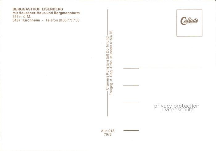 72076701 Kirchheim Hessen Berggasthof Eisenberg Heussner-Haus Borgmannturm postalisch nicht gelaufen KatCode: 11110006632011