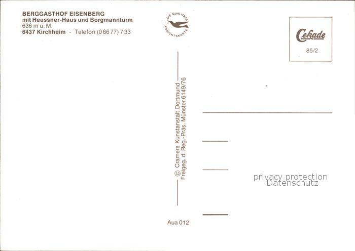 72037770 Kirchheim Hessen Berggasthof Eisenberg Heussner Haus Borgmannturm Fliegeraufnahme postalisch nicht gelaufen Erhaltung siehe scans KatCode: 11110006632011