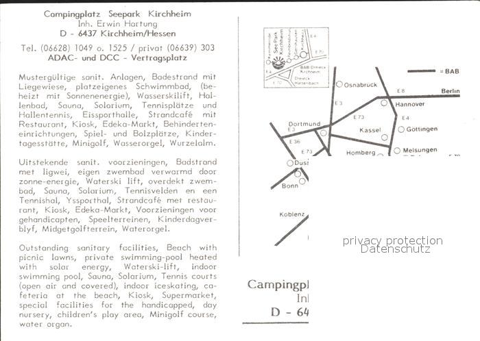 72034392 Kirchheim Hessen Campingplatz Seepark postalisch nicht gelaufen Werbekarte (keine Postkarte) Erhaltung siehe scans KatCode: 11110006632011