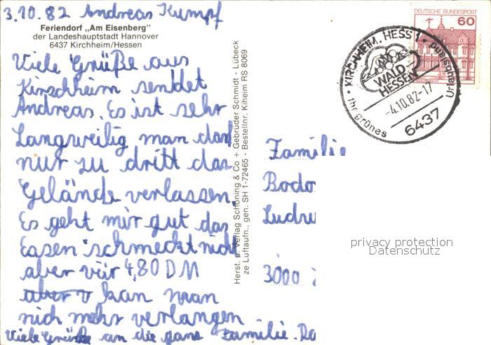 72051572 alte Postkarte Kirchheim Hessen Feriendorf Am Eisenberg Fliegeraufnahme postalisch gelaufen Erhaltung siehe scans KatCode: 11110006632011
