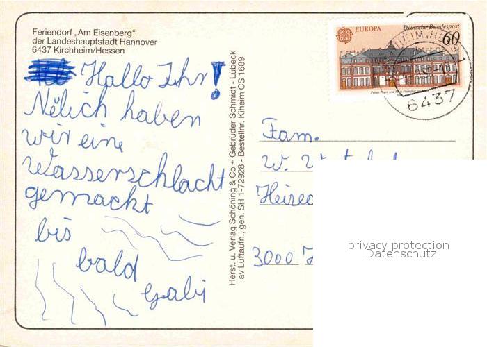 72819009 alte Postkarte Kirchheim Hessen Fliegeraufnahme Feriendorf Am Eisenberg postalisch gelaufen Erhaltung siehe scans [LiesaD40] KatCode: 11110006632011