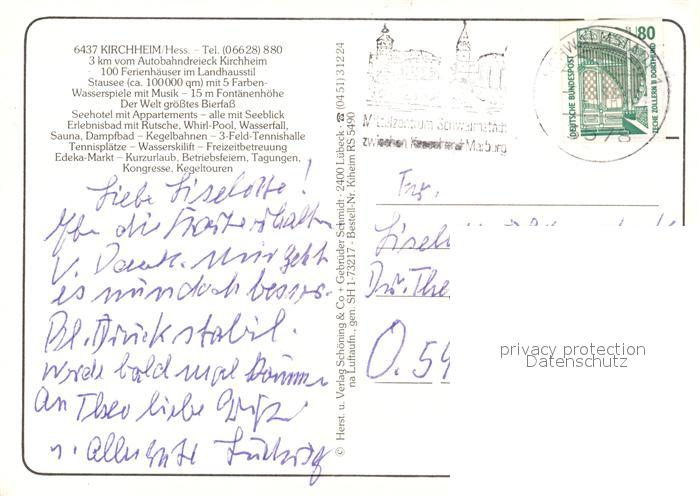 73174812 alte Postkarte Kirchheim Hessen Fliegeraufnahme Seepark postalisch gelaufen Erhaltung siehe scans [NatalD47] KatCode: 11110006632011