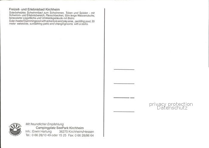 72263098 Kirchheim Hessen Freizeit und Erlebnisbad Campingplatz Seepark postalisch nicht gelaufen Erhaltung siehe scans KatCode: 11110006632011