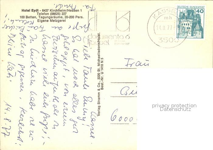 72445878 alte Postkarte Kirchheim Hessen Hotel Eydt Garten Naturschwimmbad postalisch gelaufen Erhaltung siehe scans KatCode: 11110006632011