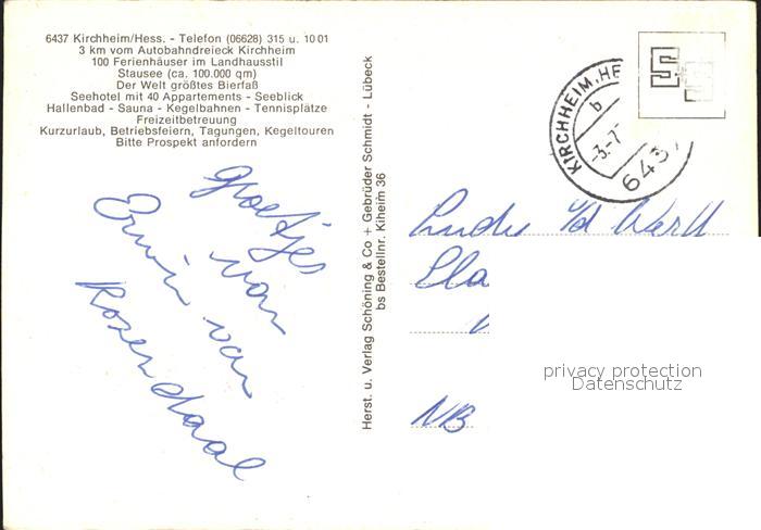 72246305 alte Postkarte Kirchheim Hessen See Park postalisch gelaufen Erhaltung siehe scans KatCode: 11110006632011