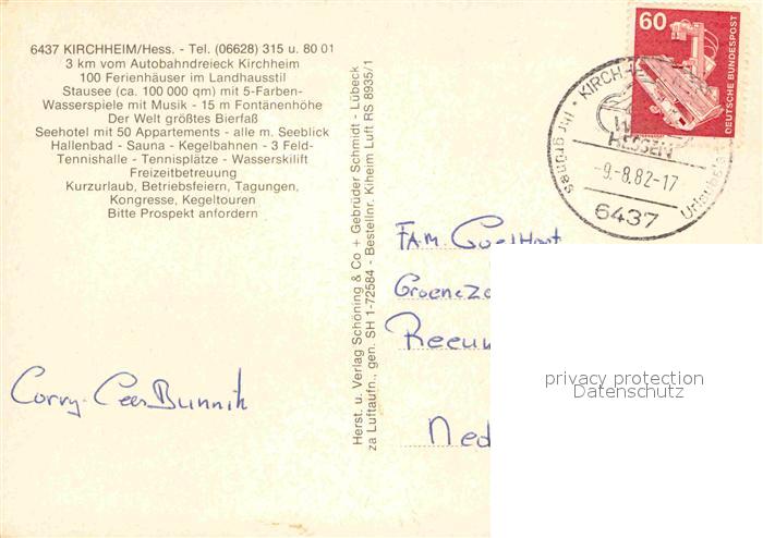 72795669 alte Postkarte Kirchheim Hessen See Park Fliegeraufnahme postalisch gelaufen Erhaltung siehe scans [FriedD77] KatCode: 11110006632011
