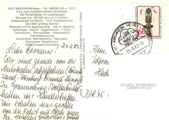 73751601 alte Postkarte Kirchheim Hessen See Park Strasse Zimmer Terrasse postalisch gelaufen Erhaltung siehe scans [WerneD78] KatCode: 11110006632011
