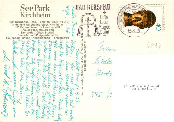 73076872 alte Postkarte Kirchheim Hessen See Park postalisch gelaufen Erhaltung siehe scans [KathaD81] KatCode: 11110006632011