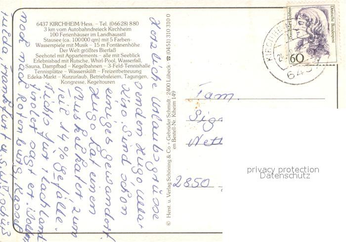 73712334 alte Postkarte Kirchheim Hessen SeePark Kirchheim Urlaubersiedlung postalisch gelaufen Erhaltung siehe scans [WerneD78] KatCode: 11110006632011