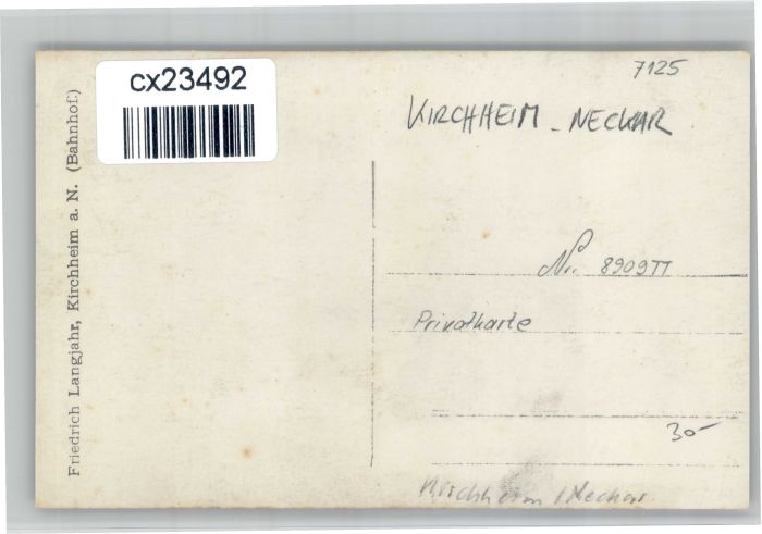 30752224 Kirchheim Neckar [Handschriftlich] postalisch nicht gelaufen KatCode: 11110008118040