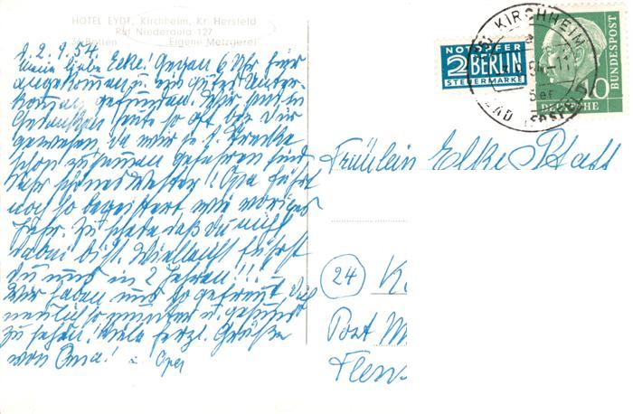 73878054 Kirchheim Niederaula Hersfeld Hessen Hotel Eydt postalisch gelaufen Erhaltung siehe scans [FriedD77] alte Postkarte Frie Katcode 11110006632011
