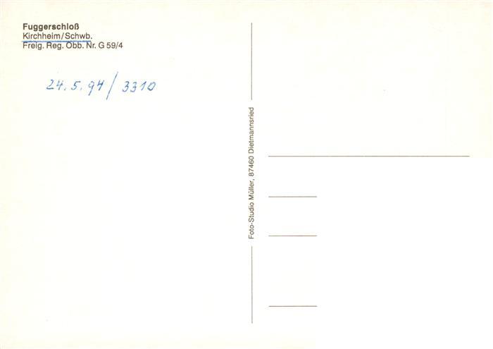 73941358 Kirchheim Schwaben Fuggerschloss Fliegeraufnahme postalisch nicht gelaufen Erhaltung siehe scans [WerneD78] KatCode: 11110009778158