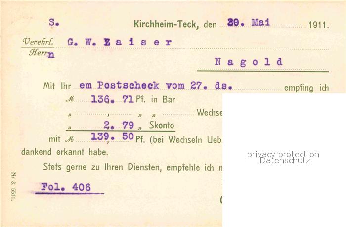 32664880 alte Postkarte Kirchheim Teck postalisch gelaufen Erhaltung siehe scans [LiesaD40] KatCode: 11110008116033