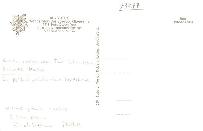 73949183 Kirchheim Teck Burg Teck Wanderheim des Schwaebischen Albvereins postalisch nicht gelaufen Erhaltung siehe scans [FriedD77] Frie Katcode 11110008116033