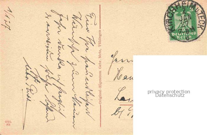 34142728 alte Postkarte Kirchheim Teck Esslingen BW Schloss postalisch gelaufen Erhaltung siehe scans [WerneD78] KatCode: 11110008116033