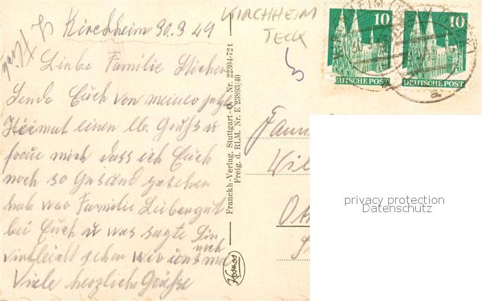 73820705 alte Postkarte Kirchheim Teck Panorama postalisch gelaufen Erhaltung siehe scans [FriedD77] KatCode: 11110008116033