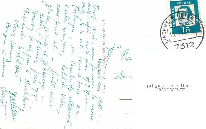 72724350 alte Postkarte Kirchheim Teck Teck Panorama Rathaus Schloss Geburtshaus Max Eyth Stadtkirche postalisch gelaufen Erhaltung siehe scans [WerneD78] KatCode: 11110008116033