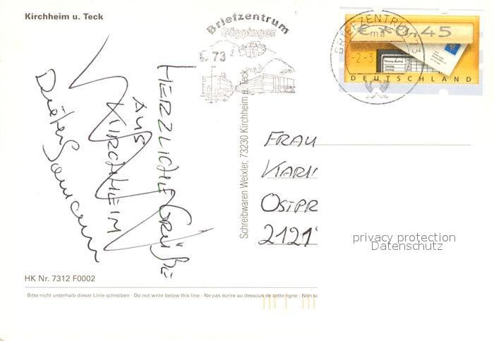 73205686 alte Postkarte Kirchheim Teck postalisch gelaufen Erhaltung siehe scans [NatalD47] KatCode: 11110008116033