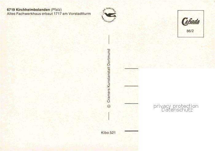 72886867 Kirchheimbolanden Altes Fachwerkhaus am Vorstadtturm postalisch nicht gelaufen Erhaltung siehe scans [WerneD78] KatCode: 11110007333039