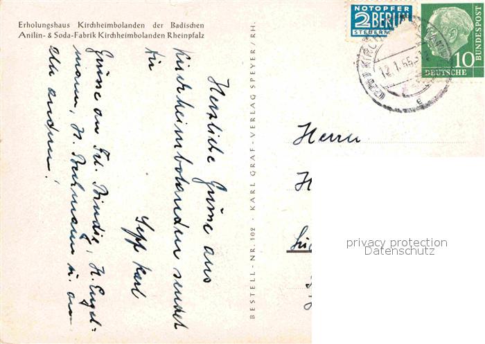 32659659 alte Postkarte Kirchheimbolanden Erholungshaus postalisch gelaufen Erhaltung siehe scans [AndreD76] KatCode: 11110007333039