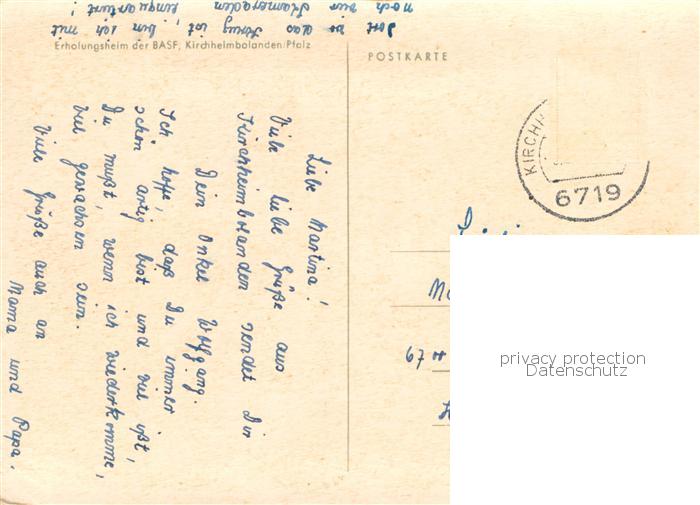 73757766 alte Postkarte Kirchheimbolanden Erholungsheim d. BASF Aussenansicht postalisch gelaufen Erhaltung siehe scans [LiesaD40] KatCode: 11110007333039