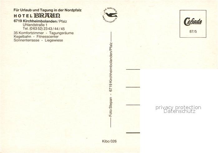 72969882 Kirchheimbolanden Hotel Braun postalisch nicht gelaufen Erhaltung siehe scans [LiesaD40] KatCode: 11110007333039