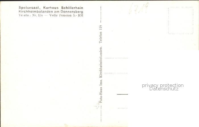 31714540 Kirchheimbolanden Kurhaus Schillerhain Speisesaal postalisch nicht gelaufen Erhaltung siehe scans KatCode: 11110007333039