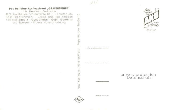 73651521 Kirchhellen Bottrop Ausflugslokal Grafenmuehle Schwanenteich Gaststube postalisch nicht gelaufen Erhaltung siehe scans [WerneD78] KatCode: 11110005512000
