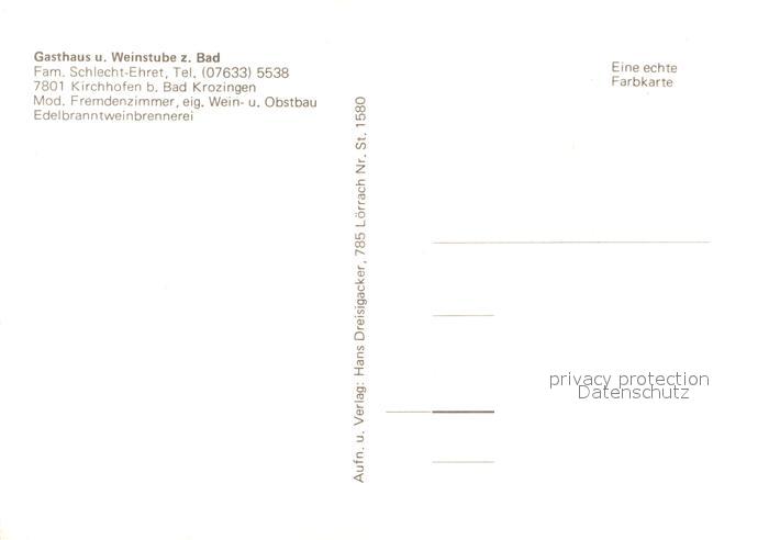 73080990 Kirchhofen Breisgau Gasthaus und Weinstube zum Bad postalisch nicht gelaufen Erhaltung siehe scans [LiesaD40] KatCode: 11110008315131