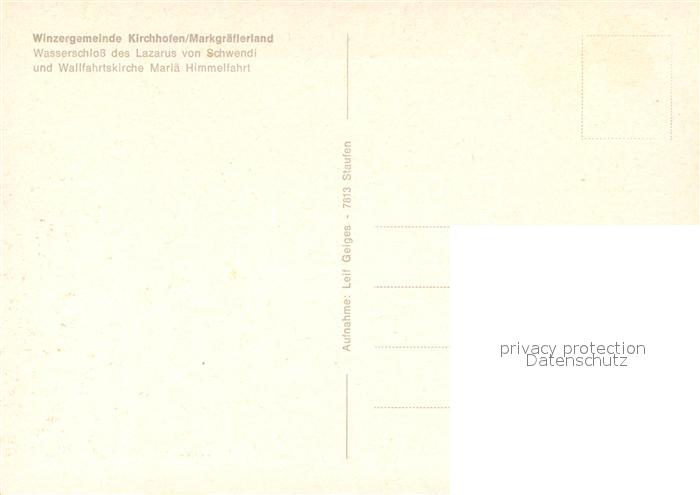 73206711 Kirchhofen Breisgau Wasserschloss des Lazarus von Schwendi postalisch nicht gelaufen Erhaltung siehe scans [KathaD81] KatCode: 11110008315131