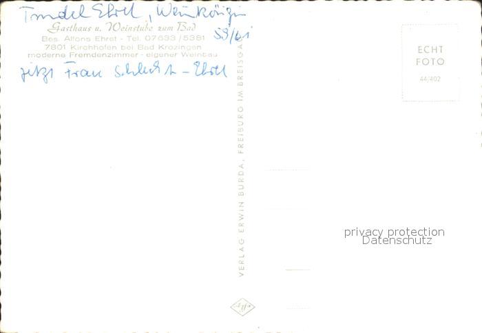 31850116 Kirchhofen Breisgau Winzergenossenschaft Kelleranlage Weinort Badische Spitzenweine postalisch nicht gelaufen KatCode: 11110008315131