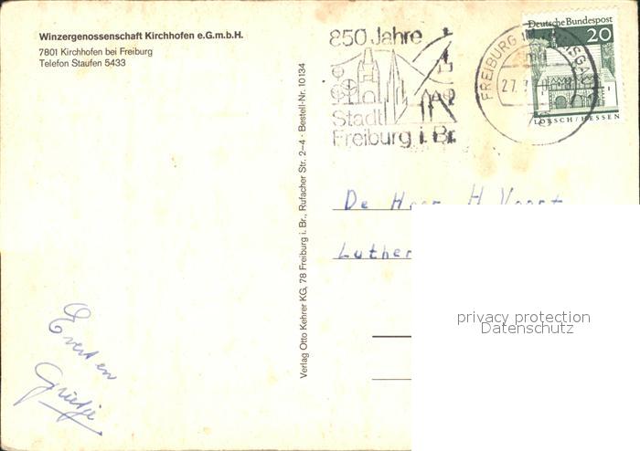 72305145 alte Postkarte Kirchhofen Breisgau Winzergenossenschaft postalisch gelaufen Erhaltung siehe scans KatCode: 11110008315131