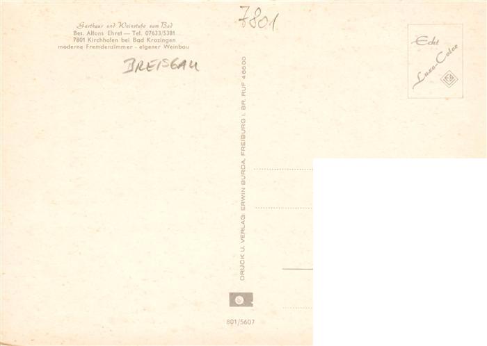 73932049 Kirchhofen Ehrenkirchen Breisgau Gasthaus und Weinstube zum Bad Gastraum postalisch nicht gelaufen Erhaltung siehe scans [FriedD77] KatCode: 11110008315131