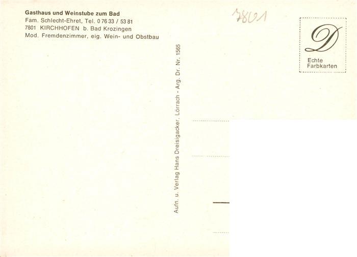 73932955 Kirchhofen Ehrenkirchen Breisgau Gasthaus und Weinstube zum Bad postalisch nicht gelaufen Erhaltung siehe scans [WerneD78] KatCode: 11110008315131