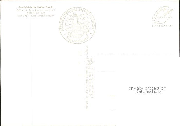 72011882 Kirchhundem Aussichtsturm Hohe Bracht postalisch nicht gelaufen Erhaltung siehe scans KatCode: 11110005966016