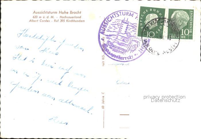 72607544 alte Postkarte Kirchhundem Aussichtsturm Hohe Bracht postalisch gelaufen Erhaltung siehe scans [LiesaD40] KatCode: 11110005966016