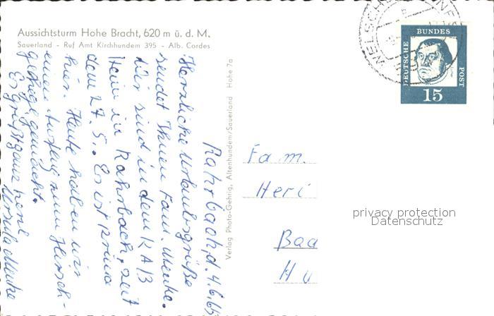 72124666 alte Postkarte Kirchhundem Aussichtsturm Hohe Bracht postalisch gelaufen Erhaltung siehe scans KatCode: 11110005966016